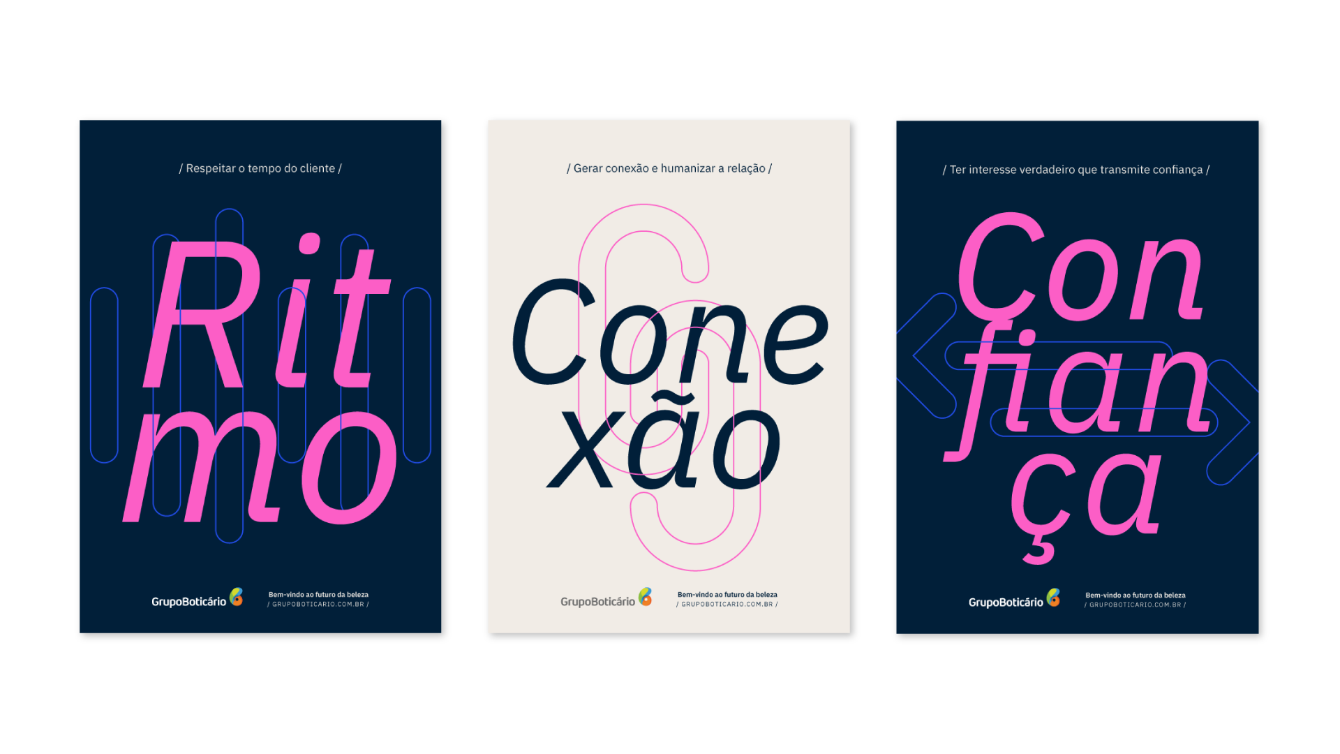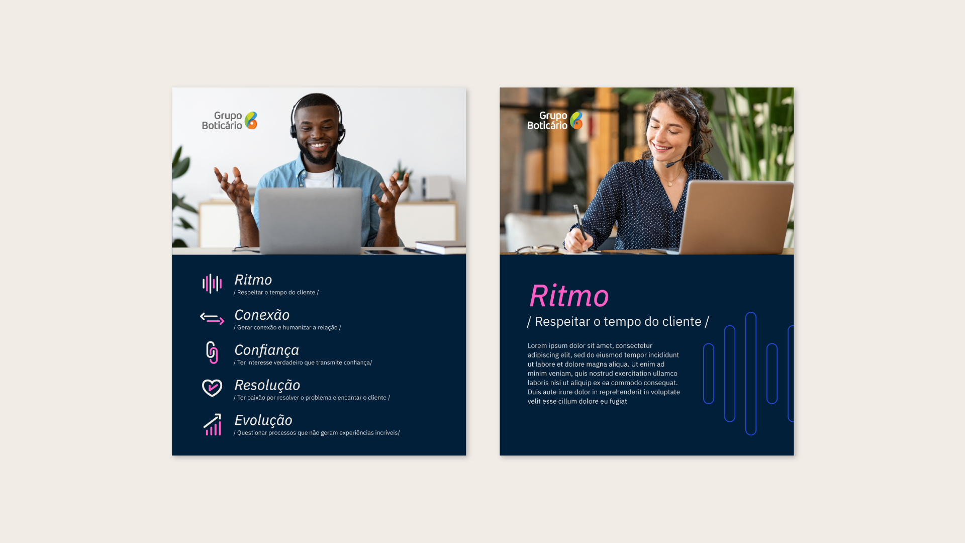 uma campanha de comunicação destinada aos colaboradores das Centrais de Relacionamento que realizam atendimento telefônico e via chat dos clientes do Grupo Boticário.